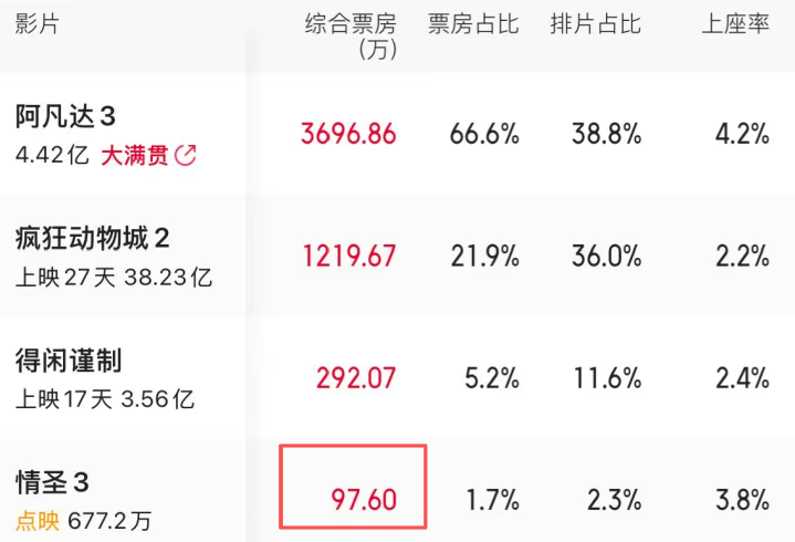 而脚下,定档于12月27日的《情圣3》,也曾开启了点映,和《阿凡达3》提前交战。