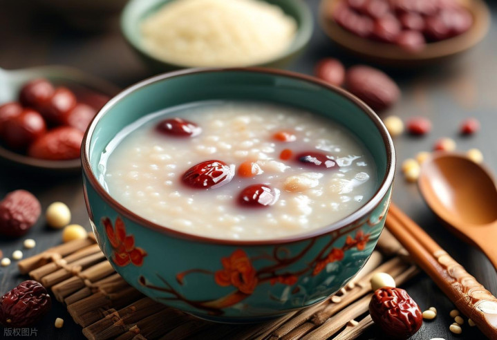 红枣山药粥:红枣10枚,山药100g,粳米50g,煮粥食用。